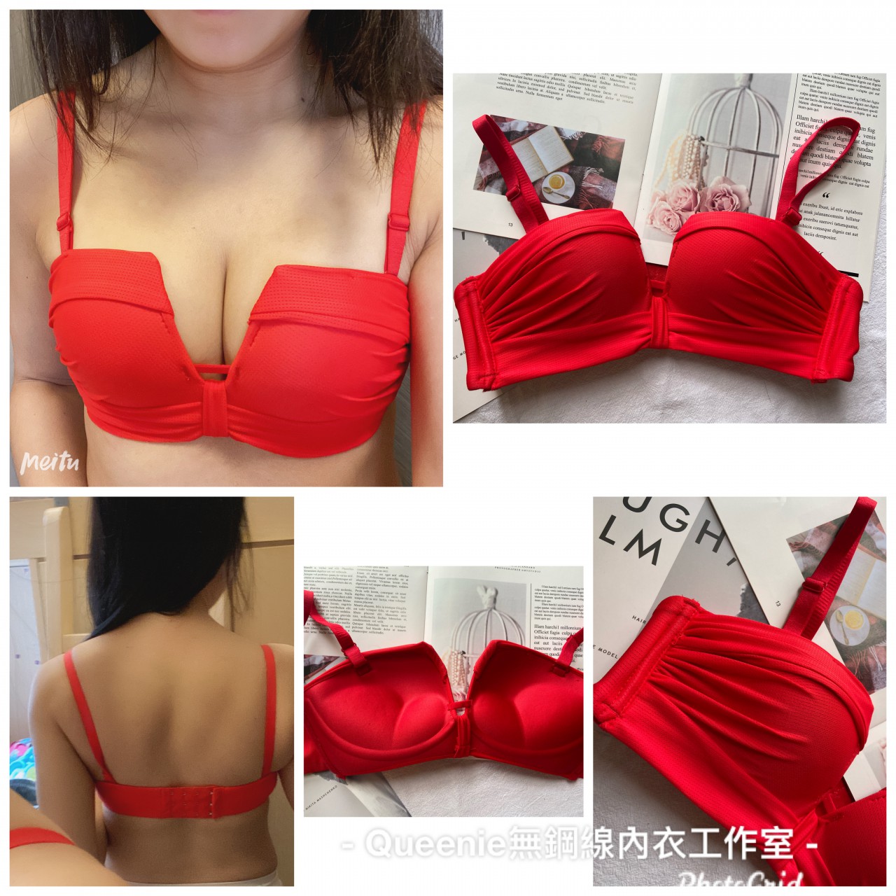 STYLE: S1039 四角杯大紅色抹胸性感內衣/3扣/大紅/70-85ABC